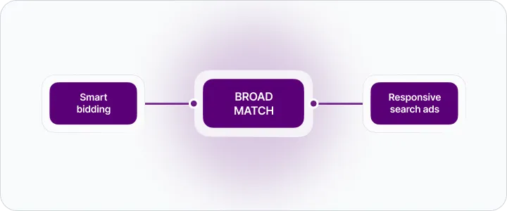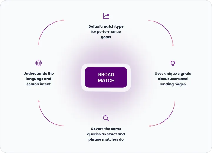“Broad match extends its reach beyond exact and phrase match by identifying related queries. This helps you attract more visitors to your website, spend less time building keyword lists, and focus your spending on keywords that work. Using broad match to capture these high-intent queries can increase your reach and coverage.”