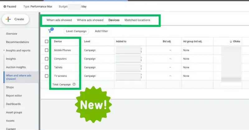 Google has updated Performance Max (Pmax) campaigns to include device-specific metrics. This enhancement allows for detailed tracking of Mobile, Computer, Tablet, and TV conversions at the campaign level, providing deeper insights into performance across various devices. (source)