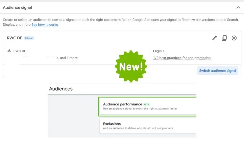 Google now allows insertion of Audience Signals into App campaigns, mirroring capabilities previously available in Performance Max campaigns. This update enhances App campaign efficiency by enabling targeted audience inclusion, beyond previous capabilities limited to audience exclusions. (source)