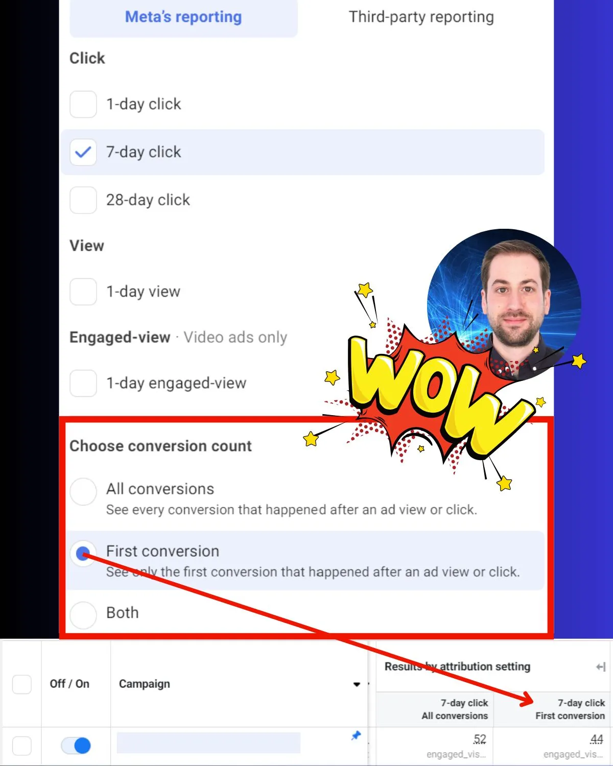 Meta now allows advertisers to edit attribution settings to differentiate between âFirst conversionâ and âAll conversionsâ. This update provides clearer insights into ad performance, aligning Meta Ads reporting with Google Analytics 4 metrics. âFirst conversionâ counts initial measurable conversions after ad interaction, while âAll conversionsâ includes subsequent conversions, clarifying performance analysis and client reporting. (source)
