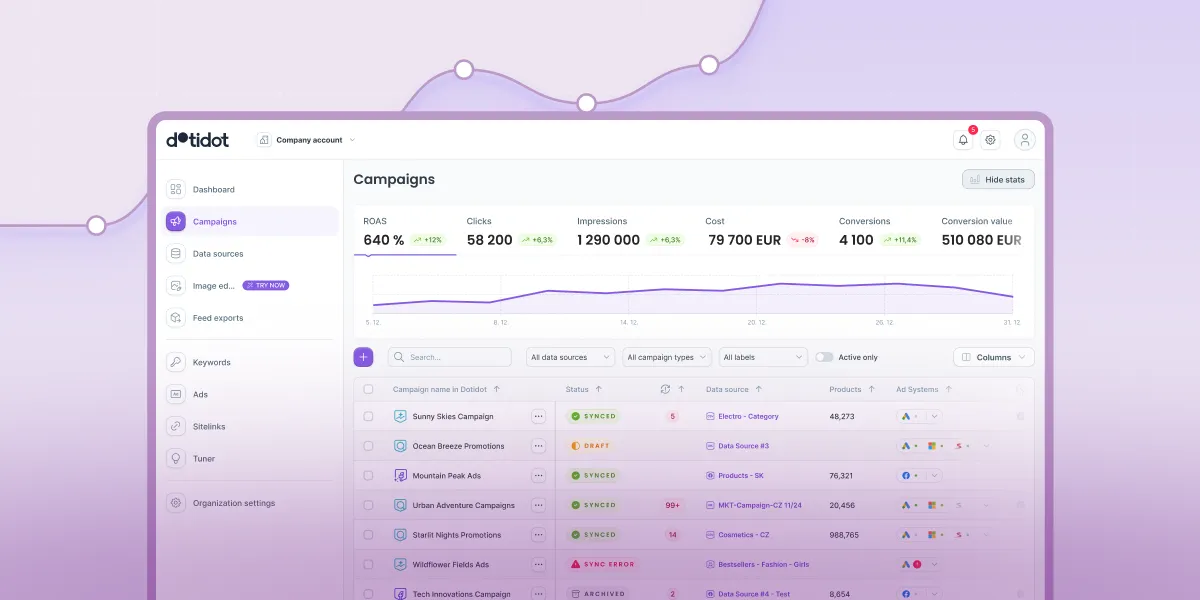 Alza, největší český e-shop, potřebovala pokrýt tisíce SKU, kategorií a dynamických klíčových slov napříč platformami i zeměmi. Manuální správa nepřipadala v úvahu. S pomocí Dotidotu se jejich PPC týmu podařilo automatizovat tvorbu kampaní dle kategorií a produktů pomocí obohacených feedů a dokonce i SEO synonym. Díky tomu Alza generuje opravdu masivní počet vysoce relevantních reklam a jejich tým získal čas na další skvělá strategická rozhodnutí.